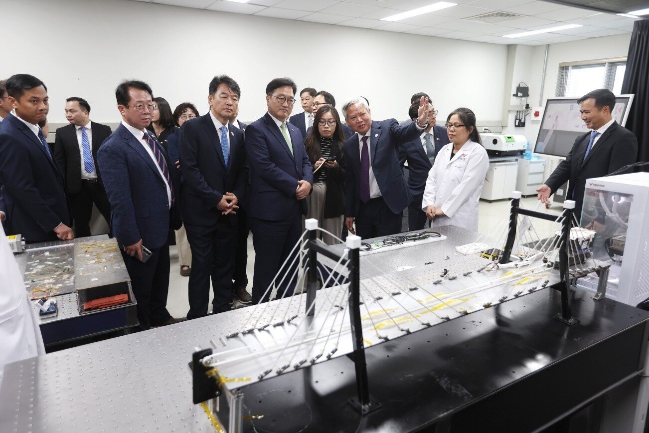 Viện trưởng Vũ Đức Lợi dẫn đoàn Nghị sĩ Quốc hội Hàn Quốc tham quan phòng thí nghiệm